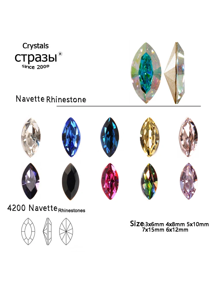 CTPA3bI Новинка 5A красочный Navette 10 шт. стеклянные аксессуары для творчества и ногтевого дизайна искусственные бриллианты острые глаза Свободные Драгоценности бусины камни