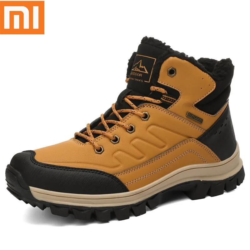 Мужские зимние ботинки Xiaomi, теплые плюшевые мужские ботинки, водонепроницаемые кожаные ботильоны, уличные Нескользящие мужские походные ботинки, кроссовки