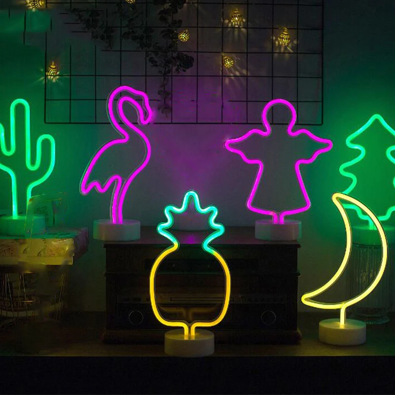 декор комнаты Радужный светодиодный неоновый светильник, праздничное украшение для рождевечерние НКИ, свадьбы, детской комнаты, домашний декор, неоновая лампа с фламинго, луной, единорогом