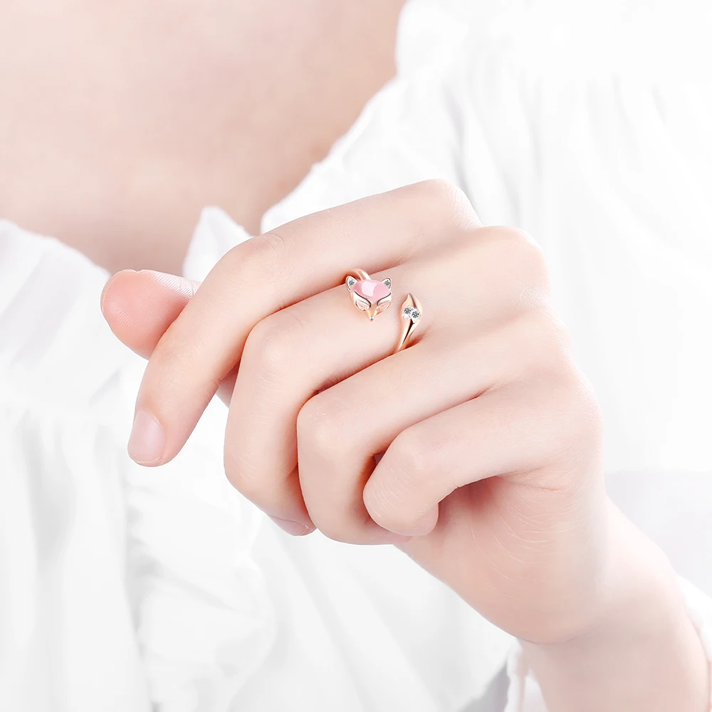 925 печать лиса Циркон Регулируемая фотография для женщин девушек С...
