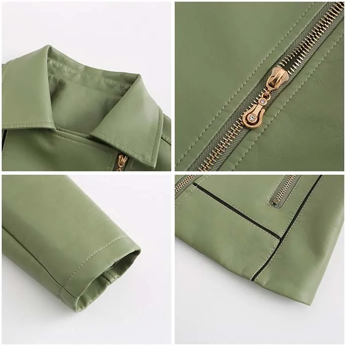 Модная женская однотонная мотоциклетная куртка из искусственной кож...