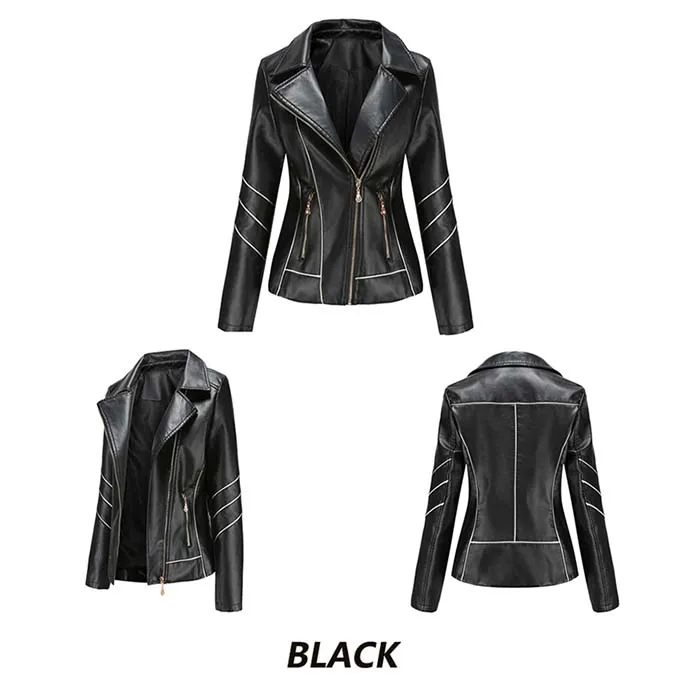 Женская куртка из ПУ кожи, черная Свободная куртка на молнии с отло...