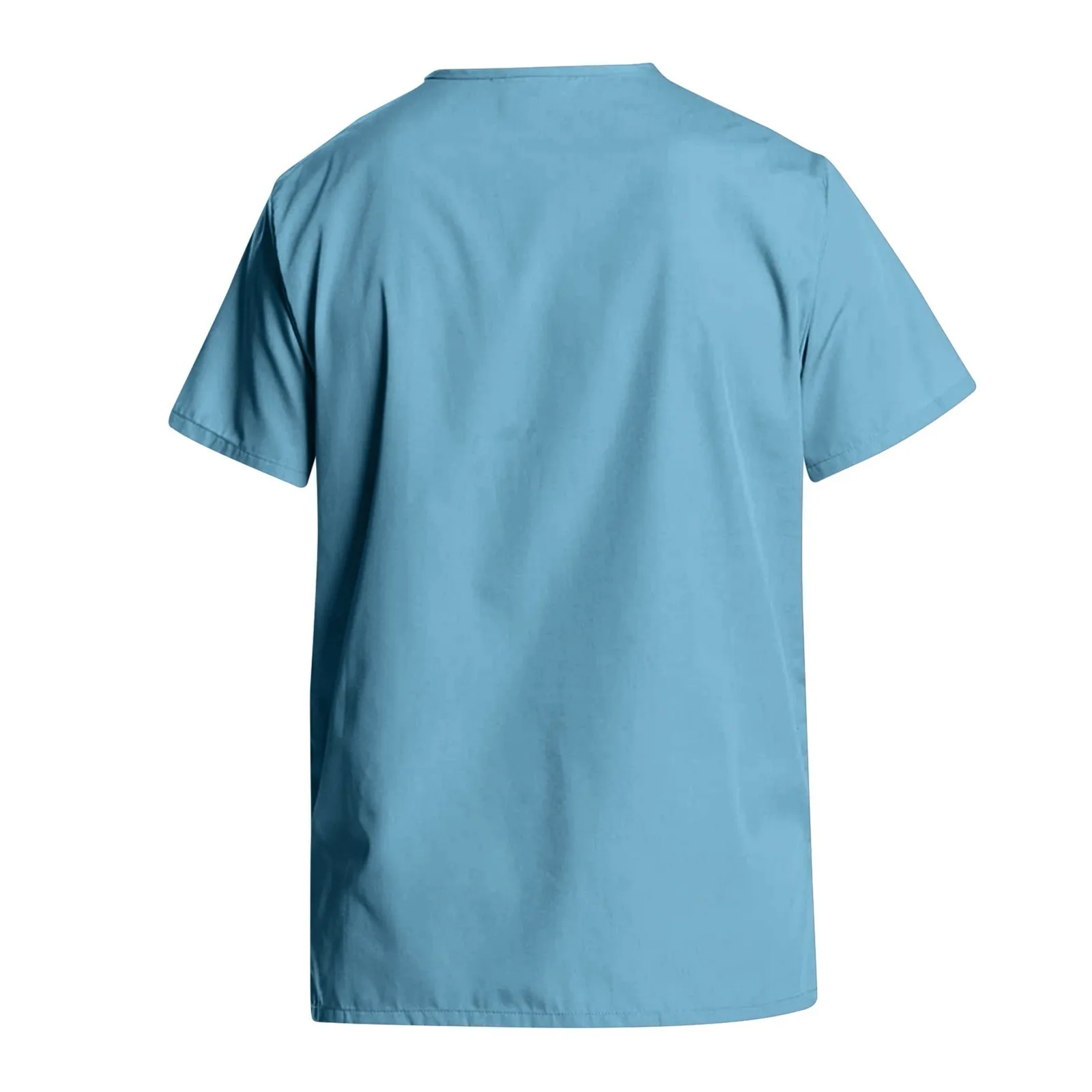 Мужские топы с коротким рукавом и v-образным вырезом, рабочие футболки для медсестер с карманами