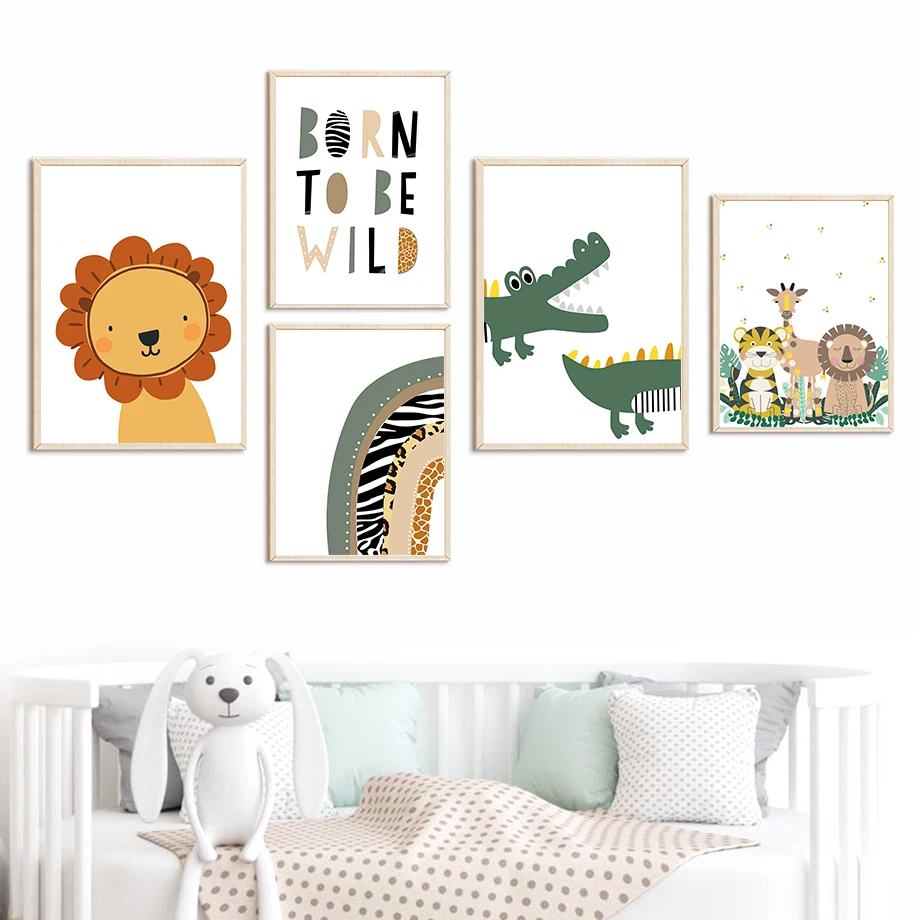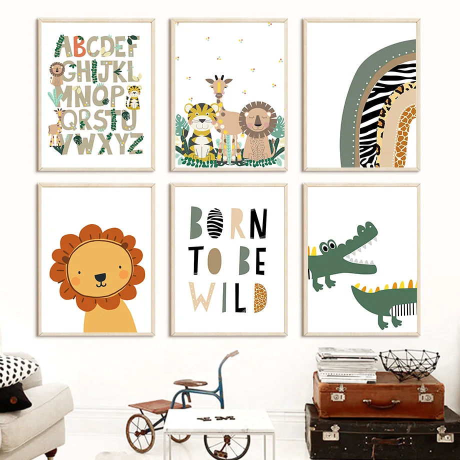 Плакаты и принты для детской комнаты, Лев, жираф, тигр, слон, носор...