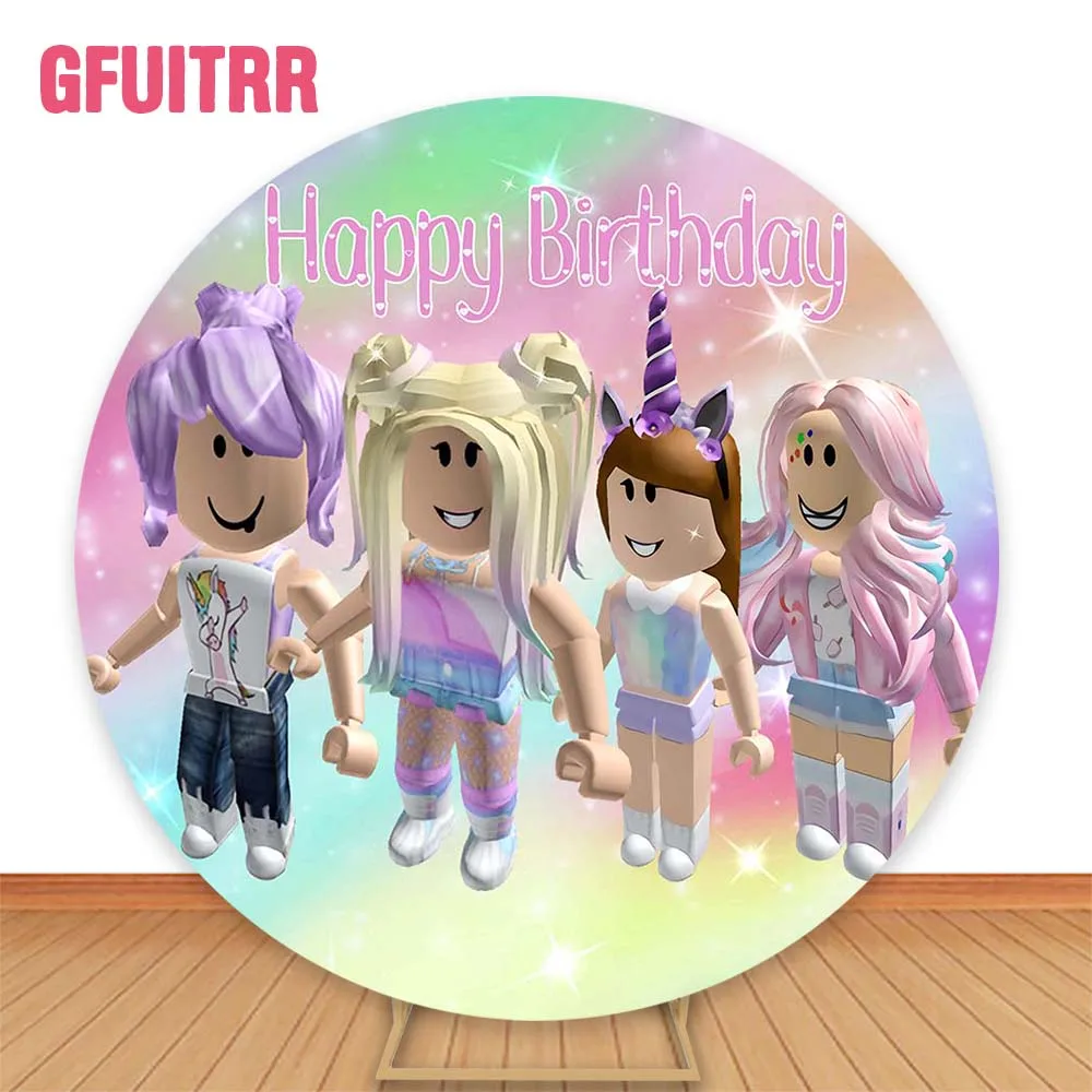GFUITRR робот фотография фоны Дети День рождения Фото фоны робот игра Радуга цвета Круглый эластичный декор плакат