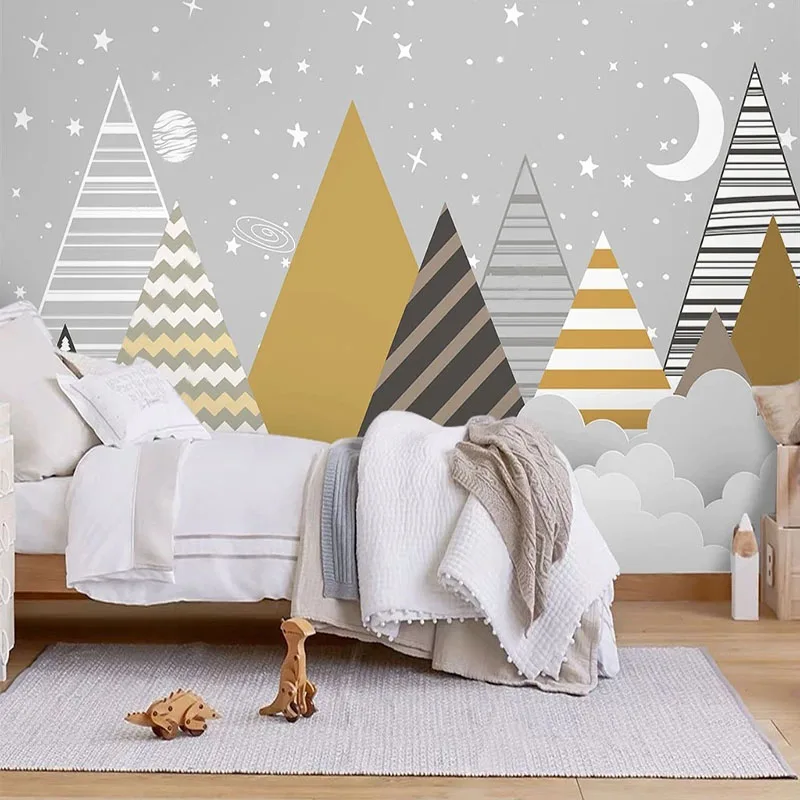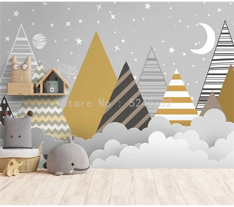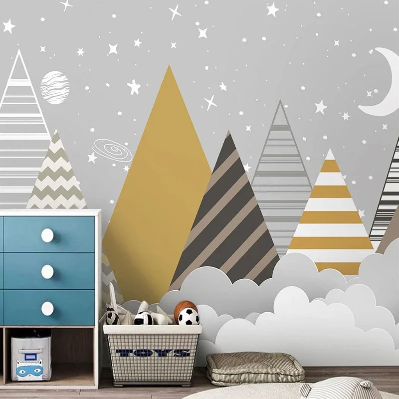 Настенные обои на заказ, в скандинавском стиле, ручная роспись, 3D геометрические горные вершины, леса, простые облака, фон для детской комнаты