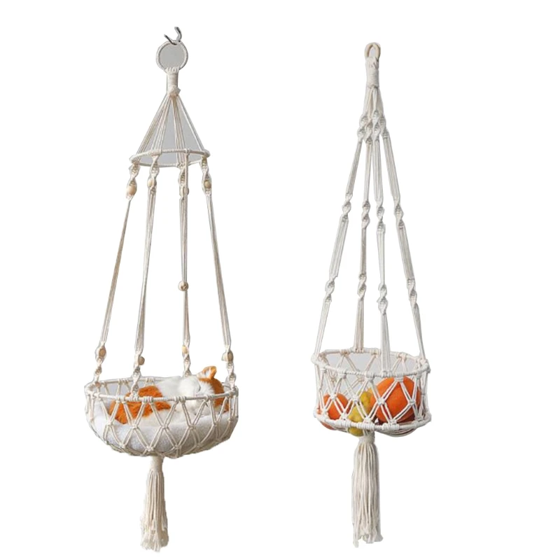 Ручная работа тканая корзина для фруктов макраме с кисточкой Кошка Pet Спящая игра гамак сетка-качели держатель для растений вешалка