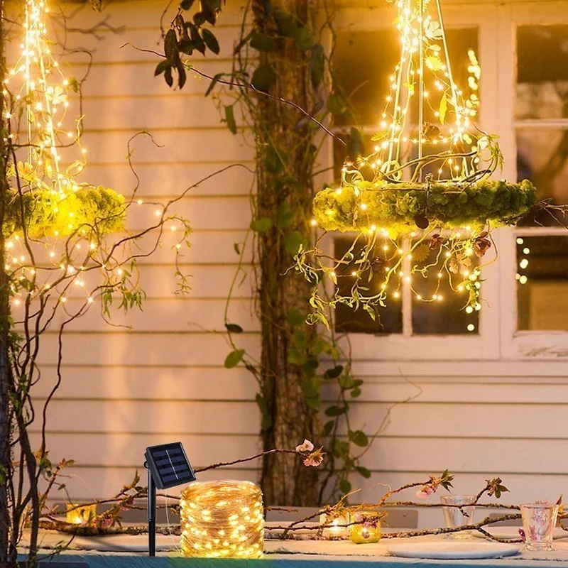Легко установить --- эти солнечные сказочные огни тонкие и гибкие. Таким образом, вы можете легко создавать нужные формы, их также легко хранить. СВЕТОДИОДНЫЕ гирлянды прекрасно подходят для наружных рождественских украшений.
