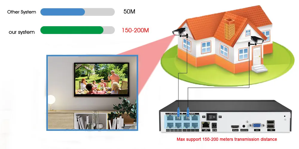 Система POE поддерживает максимальное расстояние передачи кабелей POE 150-200 м, что значительно повышает удобство домашней установки.