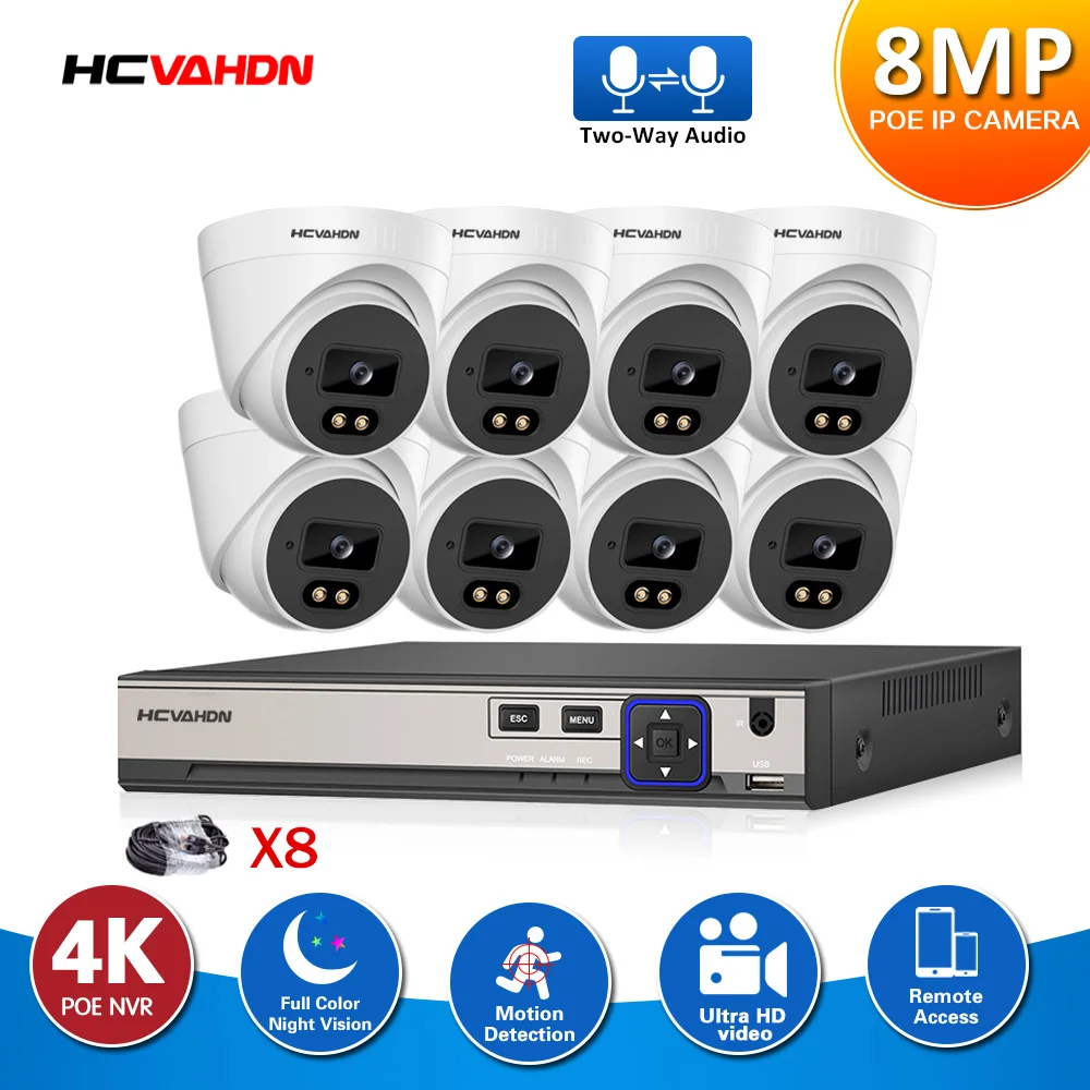 Комплект видеонаблюдения Ultra HD, 4K, 8 каналов, POE, NVR, 8 Мп, двусторонняя аудиосвязь, H.265, умный дом, купольная IP-камера видеонаблюдения