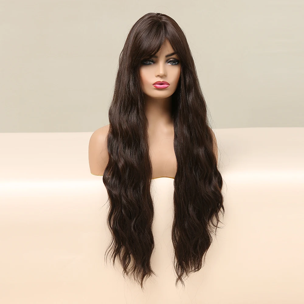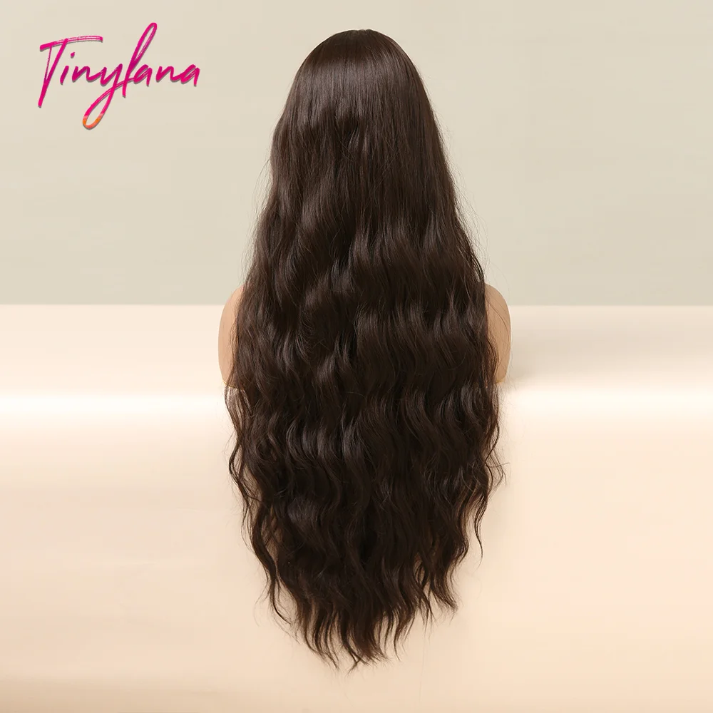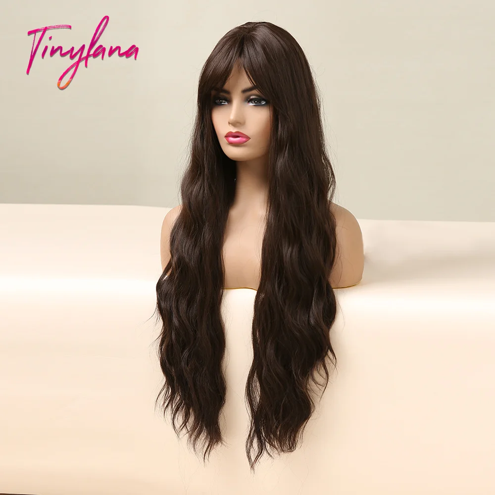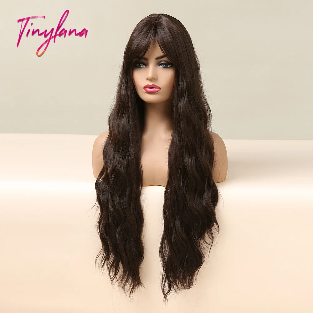 Парик TINY LANA, темный, черный, коричневый, длинный, волнистый, с боковой челкой, синтетический, для чернокожих женщин, для косплея, вечеринки, ежедневный, термостойкий