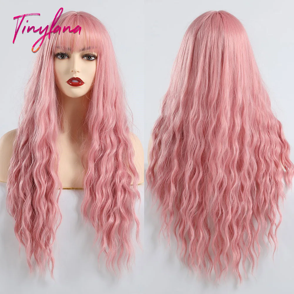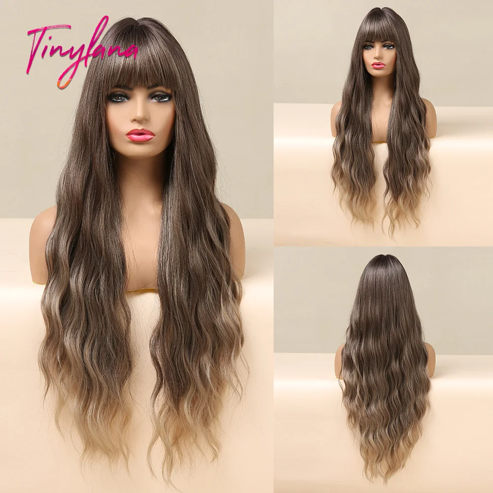 Длинные волнистые парики TINY LANA, темно-черные, коричневые, с боковой челкой, синтетический парик для чернокожих женщин, косплевечерние, повседневная термостойкость
