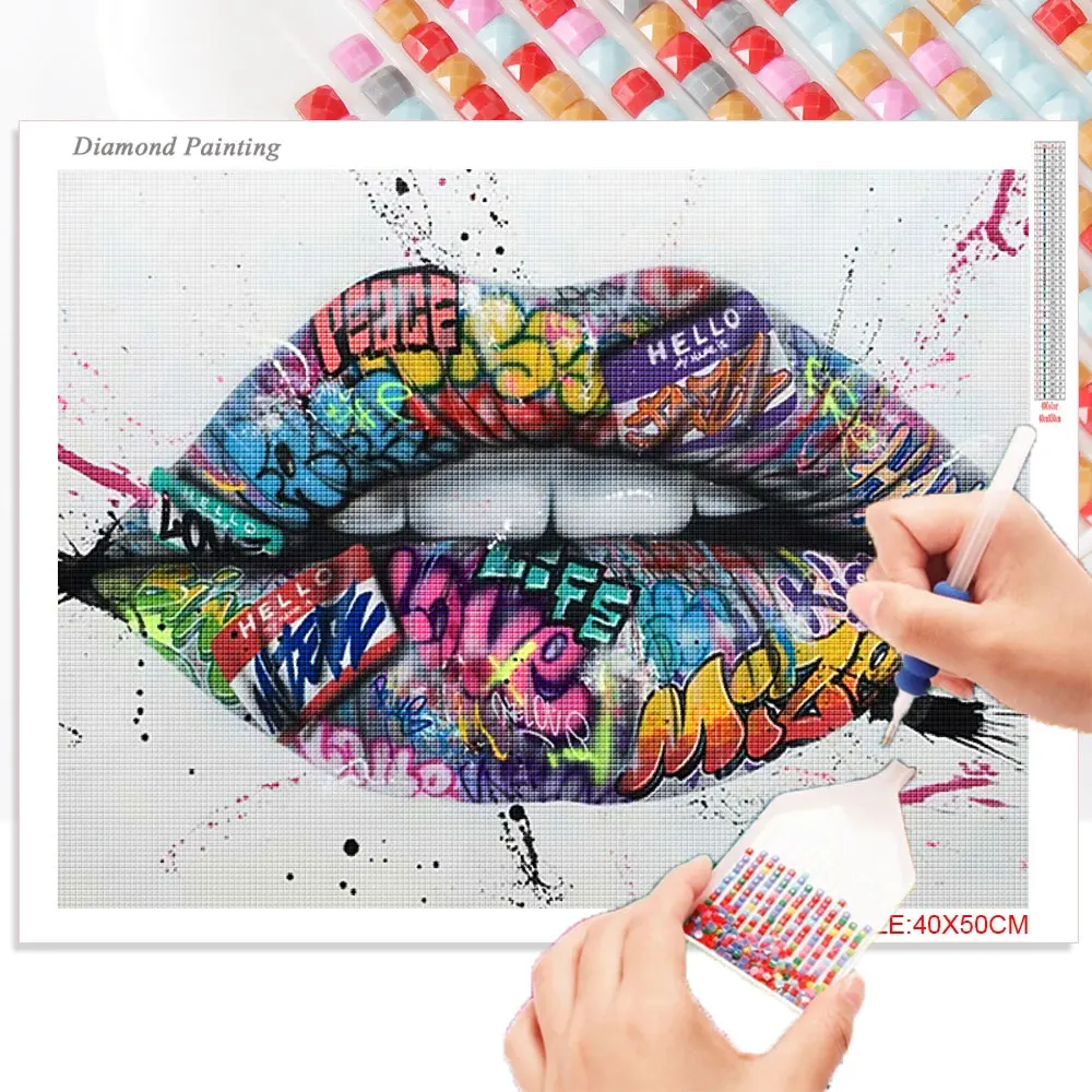 5D DIY алмазная живопись, живопись зубами, губами, улица, граффити, искусство, мозаика, вышивка крестиком, набор для домашнего декора