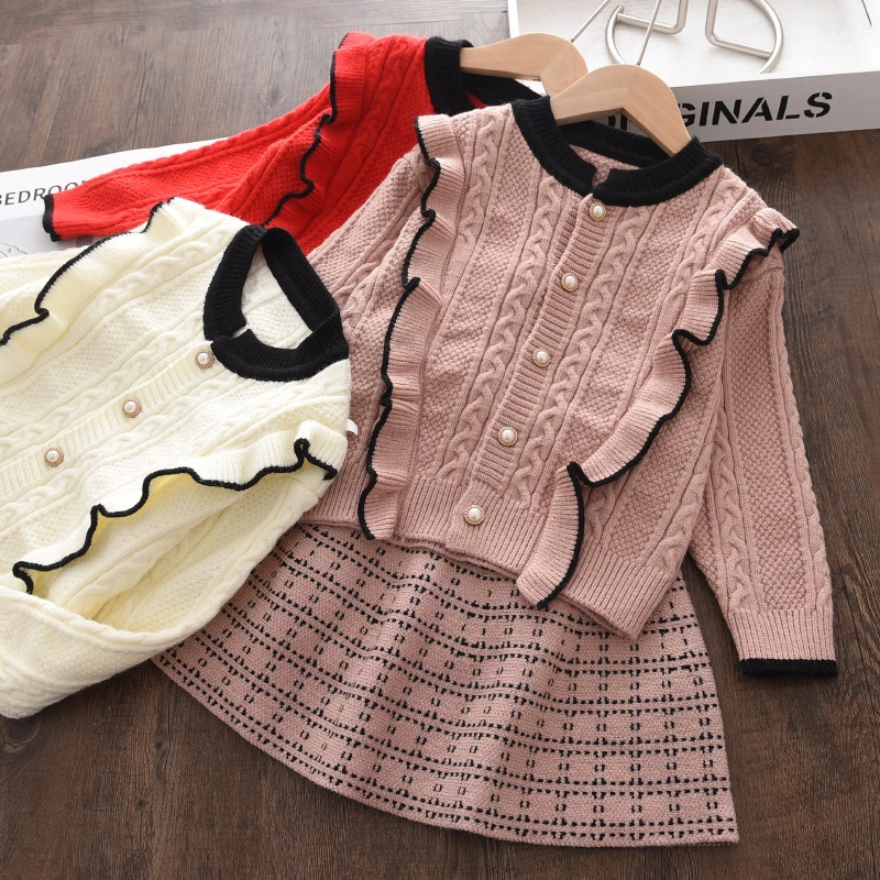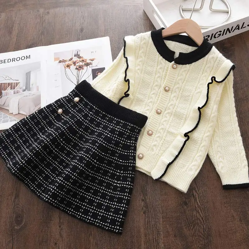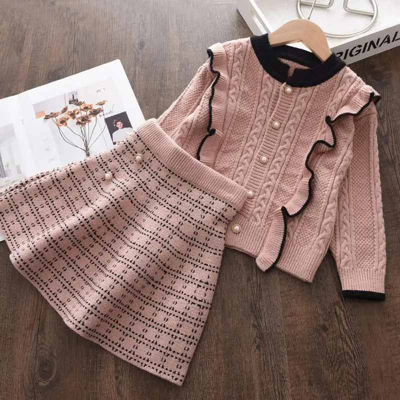 Новое поступление 2021, одежда для маленьких девочек, Осенние вязаные свитера, одежда, костюмы, повседневная юбка, наряды принцессы