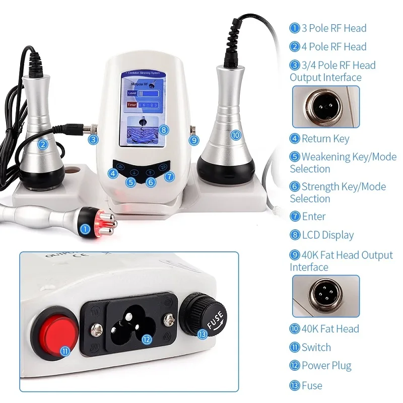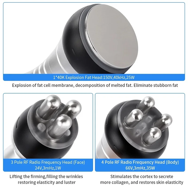 Ультразвуковая кавитационная радиочастотная машина 3 в 1 40K с металлической палочкой, радиочастота 5 МГц, устройство для сжигания жира в теле для похудения и потери веса