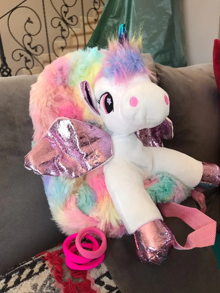Детский меховой рюкзак, для девочек, с единорогом, на молнии