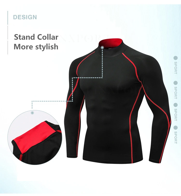 Футболки с высоким воротником, Мужская одежда для бега, одежда для спортзала, облегающие топы, спортивные трико, мужские рубашки с длинным рукавом, топы