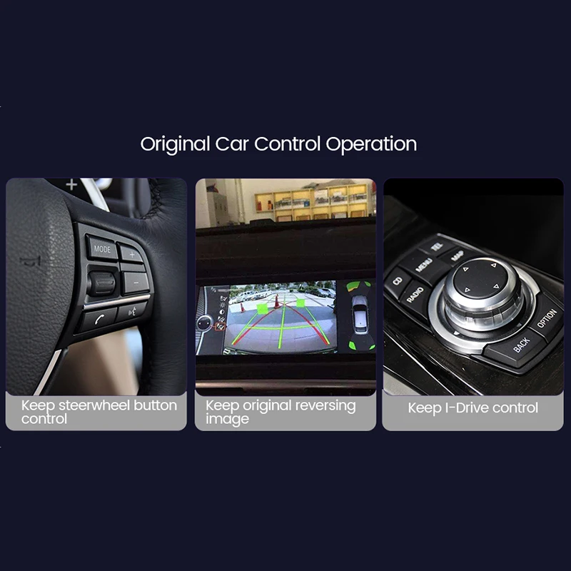 Совместим со всеми оригинальными OEM функциями. Содержит кнопки рулевого колеса, ручки iDrive, датчики парковки, камеры и многое другое.