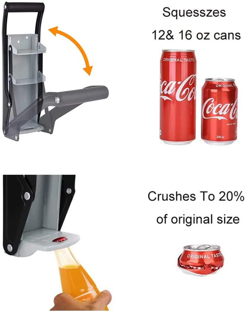Консервная дробилка и открывалка для бутылок-сверхмощный 16 унций 2 в 1 500 мл Алюминиевая Питьевая жестяная банка для кухни Рециркулирующий инструмент для рециркуляции пивных банок соды, жестяные банки для соды пива