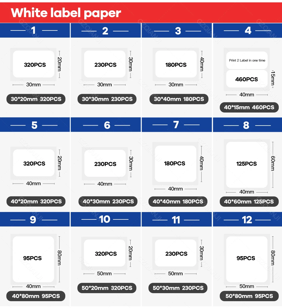 40*60 мм и выше бумага для этикеток поддерживает интеллектуальный возврат бумаги.