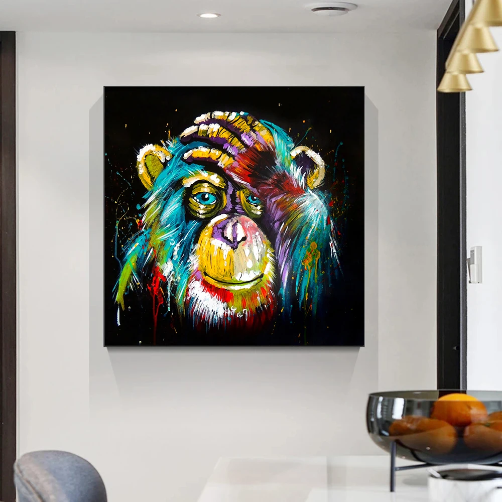 Граффити искусство Милая обезьяна холст живопись абстрактные постеры и принты Бэнкси поп настенные картины для декора гостиной