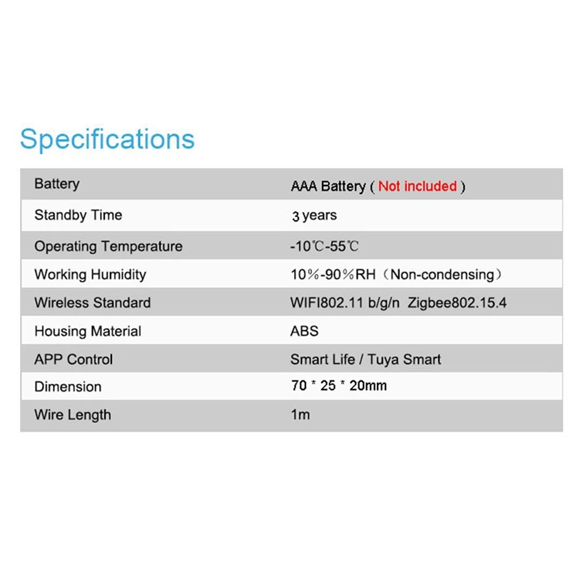 [Пульт дистанционного управления APP] после подключения к концентратору ZigBee загрузите приложение «Smart Life/Tuya» на iOS и Android, чтобы добавить устройство для обнаружения перерасхода воды. Домашняя безопасность в вашей руке постоянно.[Принцип работы] Когда две футы детектора были погружены в воду, уведомления об оповещении будут доставлены на ваш телефон, имейте в виду, что вода переливается во времени, что снижает риск затопления.[Легко установить] не требуется никаких сложных инструментов для установки. Датчик может быть установлен с двухсторонней клейкой лентой всего за несколько шагов.[Отличный дизайн] маленький и модный, что делает вашу домашнюю жизнь умной и расслабляющей. Дизайн с низким потреблением, который может сделать его работать долгое время.[Широкое применение] идеальное предупреждение о вторжении воды в дома, квартиры (кухня, туалет), склады, офисы, лаборатории, гостиничные номера, гаражи и т. д.Примечание: умный датчик утечки воды ZigBee Tuya должен работать с шлюзом Tuya, который поддерживает протокол ZigBee. Он не может работать без интеллектуального шлюза Tuya ZigBee.Тип: сигнализация уровня водыПитание: 2 х ААА 1,5 V (не прилагаются)Ток в режиме ожидания: 15uAТок сигнала тревоги: 150 мАРабочая температура: -30 ℃ ~ 70 ℃Рабочая влажность: 20% ~ 85%Цвет: белыйМатериал: АБС-пластикРазмер: 70x25x20ммПосылка:1 х датчик воды1 х руководство на английском языкеТолько вышеуказанная посылка, другие товары не включены.Примечание: светильник и различные дисплеи могут привести к тому, что цвет товара на картинке немного отличается от реального. Допускается погрешность в измерениях +/- 1-3 см.
