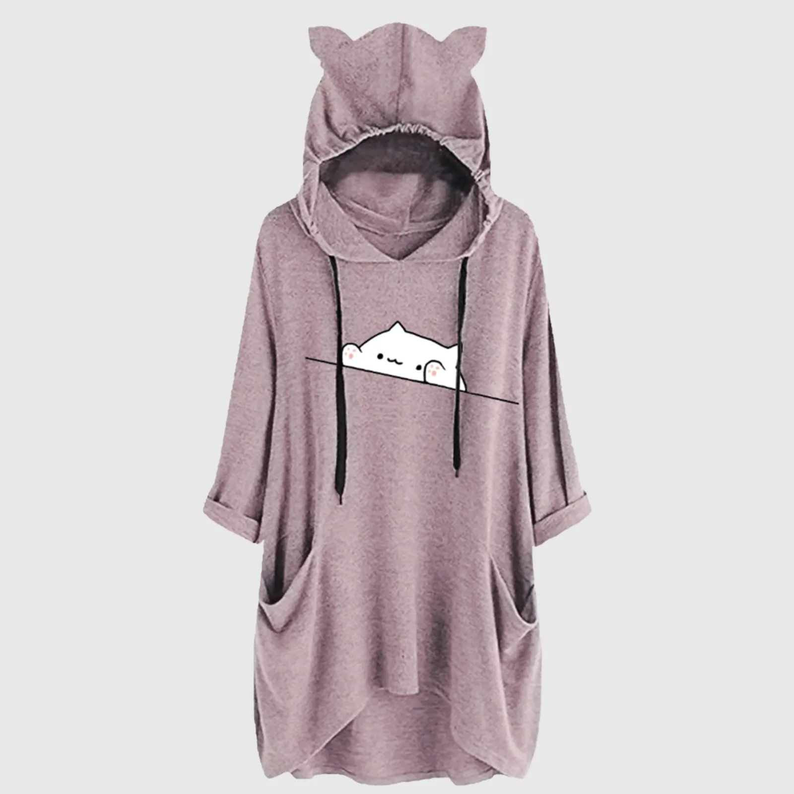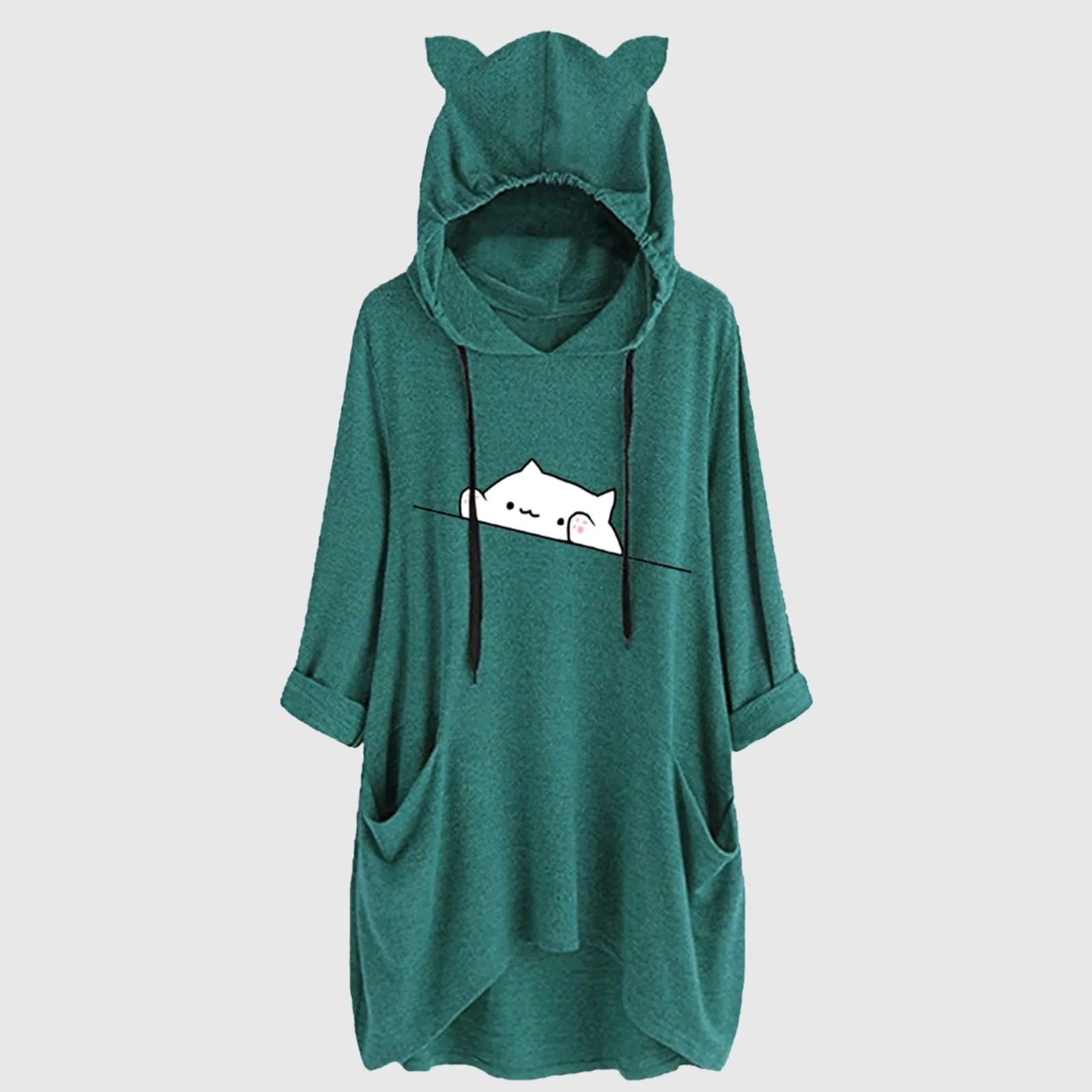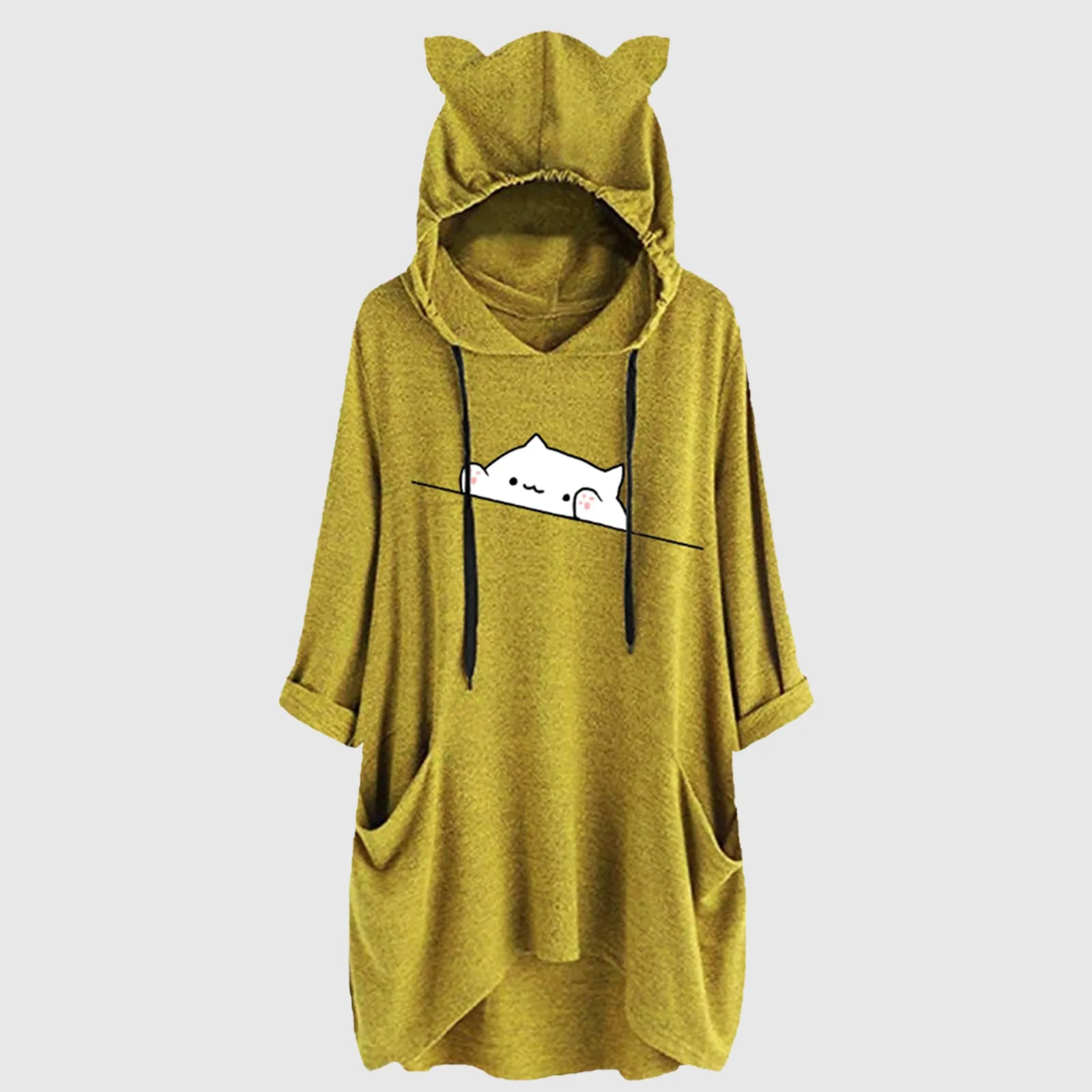 Номер моделиEar Hat Mid-length Blouse Mid-sleeve Cute Printed Hooded Loose Top