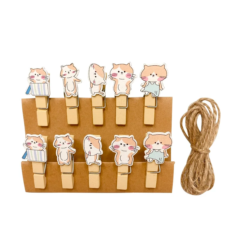 10 шт. милые деревянные зажимы в виде желтого кота, зажимы для фотографий, зажимы для бумаги, канцелярские принадлежности, прищепки, подарки для вечерние ручной работы