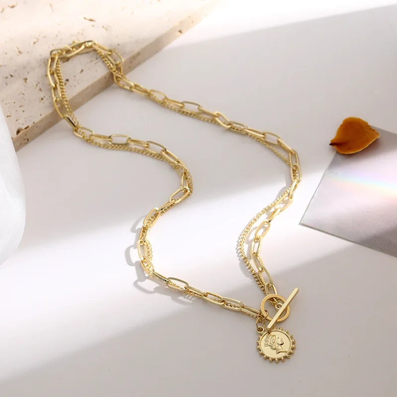 Металлическое многослойное женское ожерелье, модное простое очаровательное ретро ожерелье на цепочке до ключиц, в стиле панк, хип-хоп, подарок на день рождения
