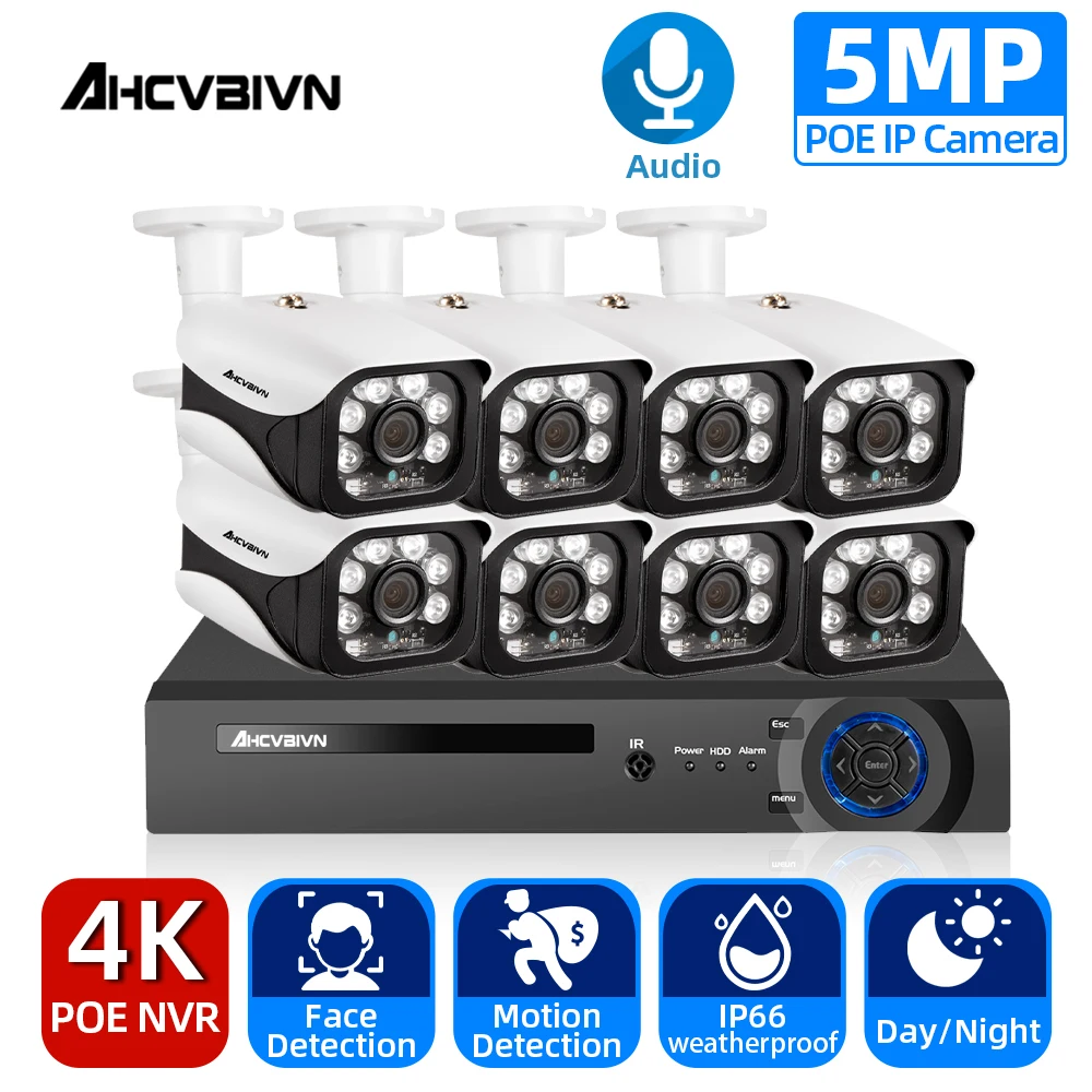 4K 8CH POE NVR распознавание лица 5MP камера безопасности система наружного водонепроницаемого видеонаблюдения видео регистратор комплект Xmeye App