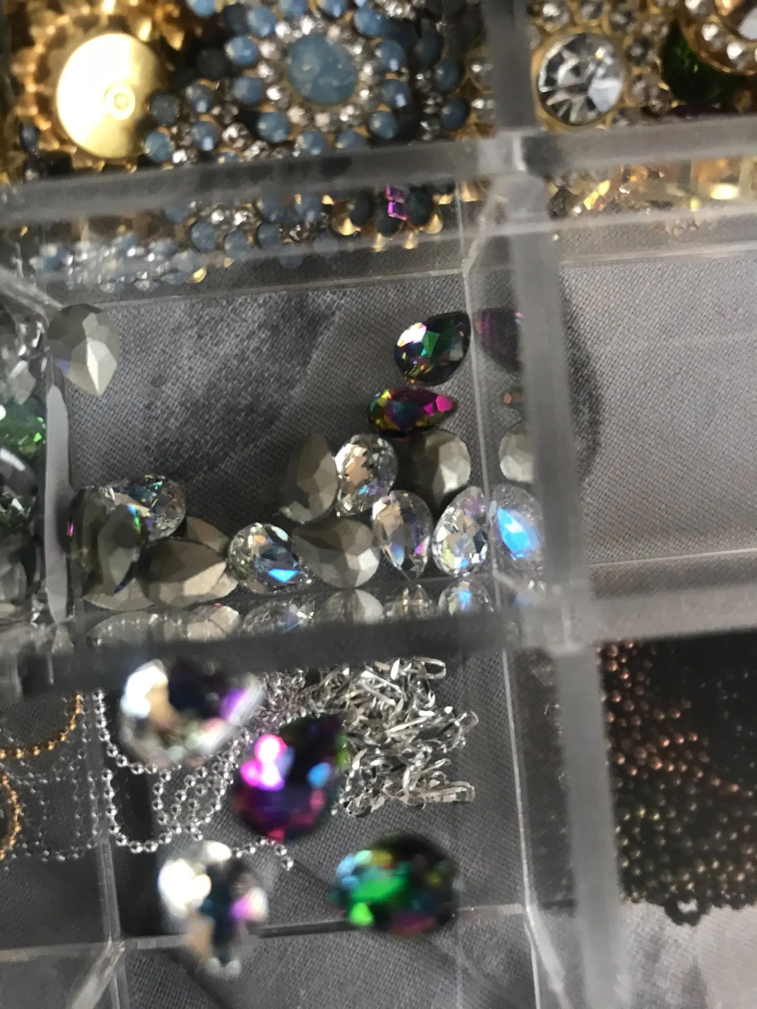 Блестящие кристаллы, роза, водяной опал, пришивные стразы с когтями...