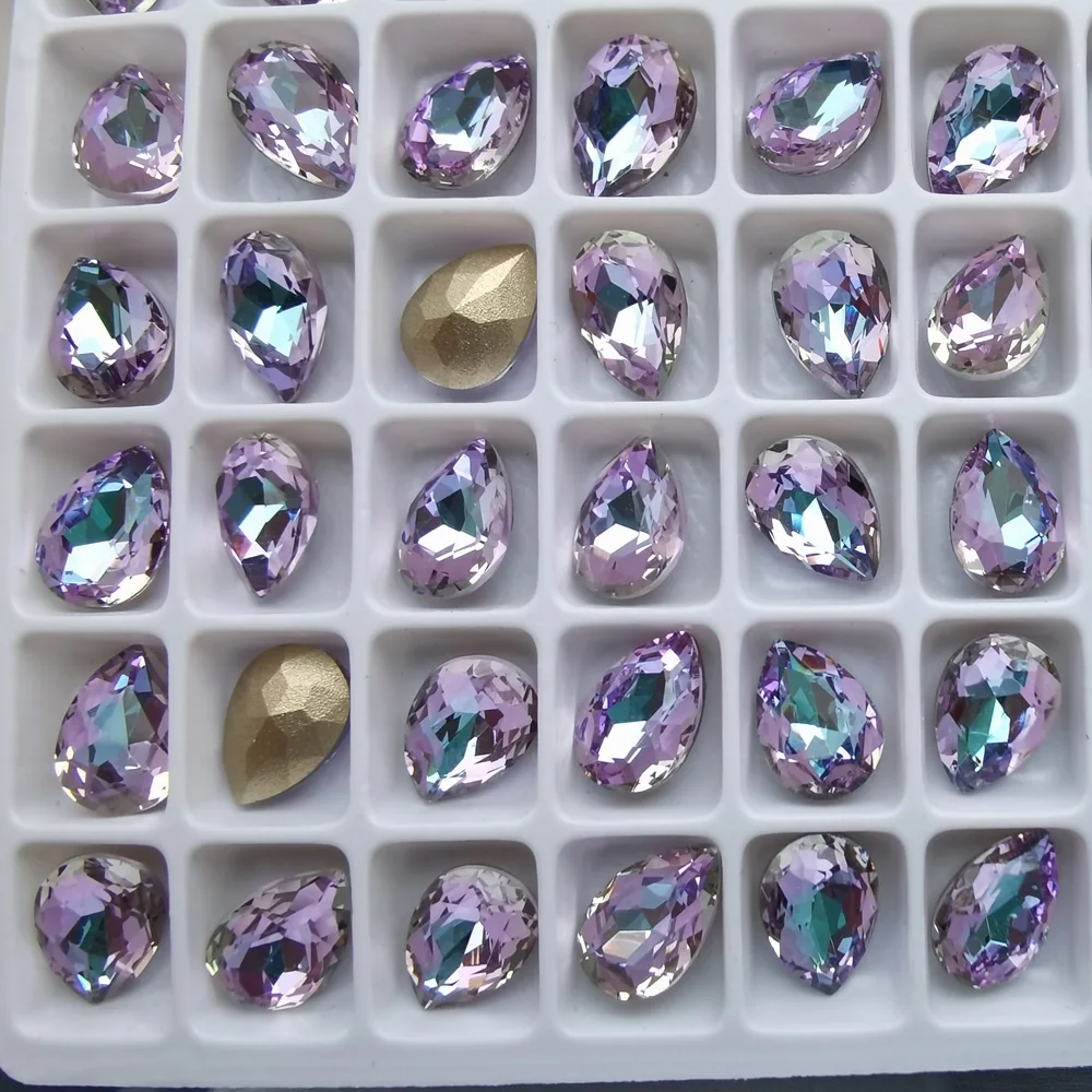 4300 Стразы в форме капли фиолетового цвета, пришивные стразы из го...