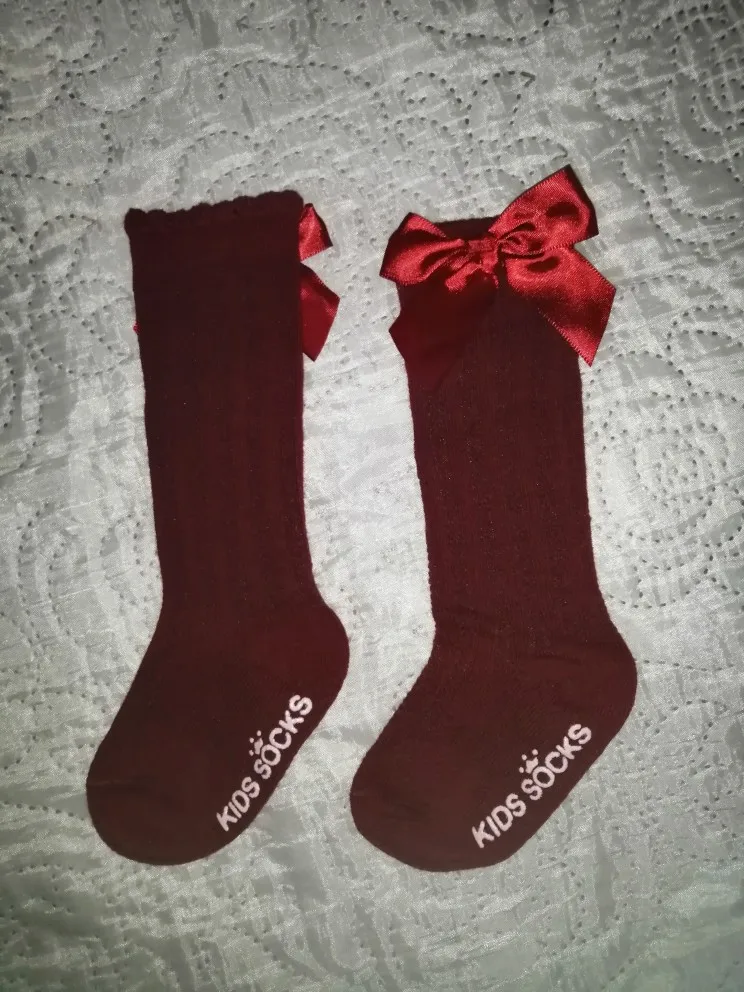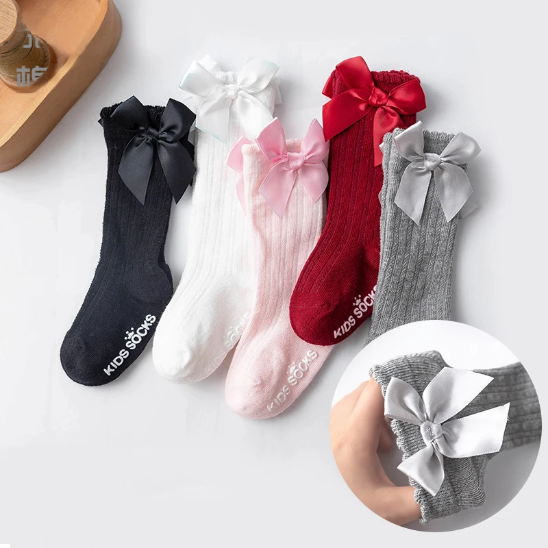 Хлопковые гольфы с бантом для новорожденных девочек, на Рождество и зиму, Нескользящие