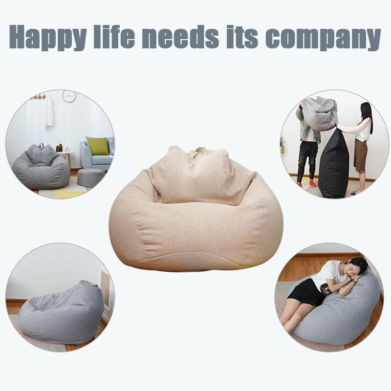 Покрывало для диванов большого размера, стулья без наполнителя, из льняной ткани, мешок для отдыха, пуф, татами, салонный пуф