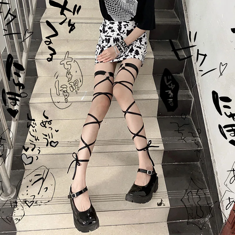 Чулки женские, из искусственной кожи, с перекрестными лямками, 1 пара