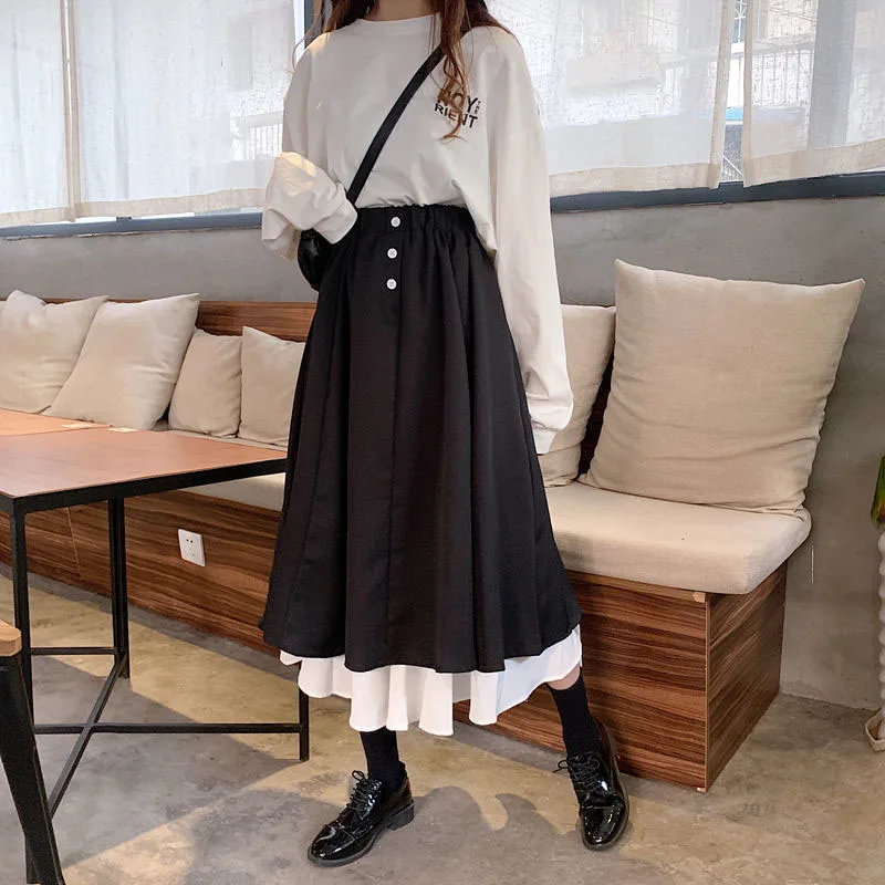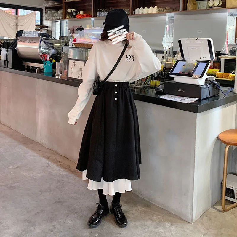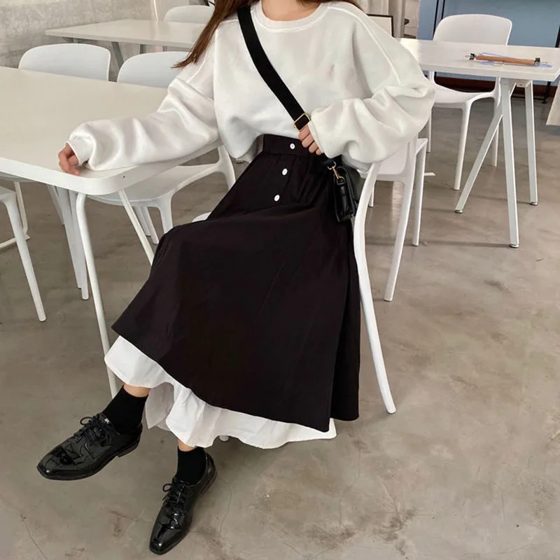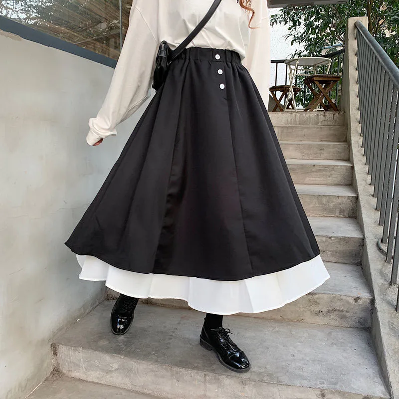 Юбка Lucyever Женская трапециевидная с завышенной талией, длинная юбка в Корейском стиле, чёрная белая, на осень, 2021