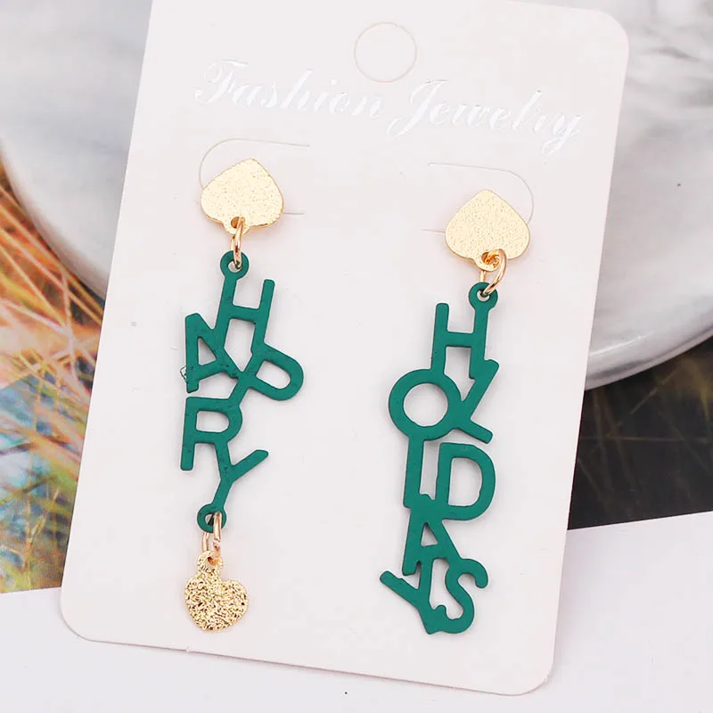 Женские серьги-подвески, зеленые, металлические, с рисунком растений