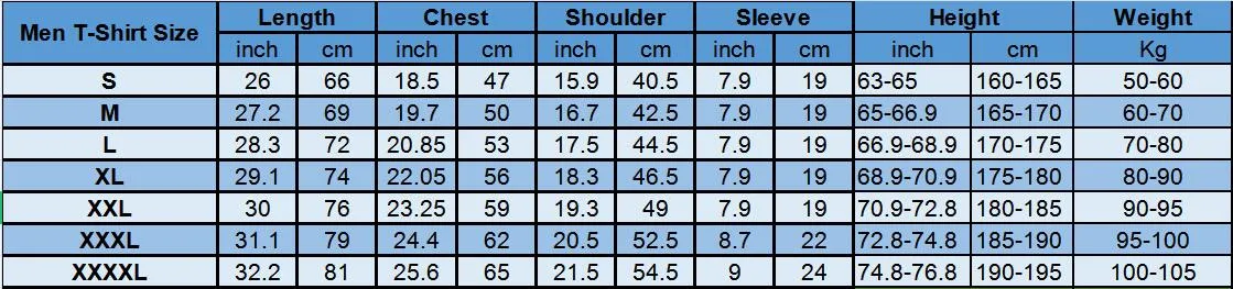 Все наши футболки используютсяСтандартный Азиатский размер.1 дюйм = 2,54 см; 1 см = 0,39 дюймов.