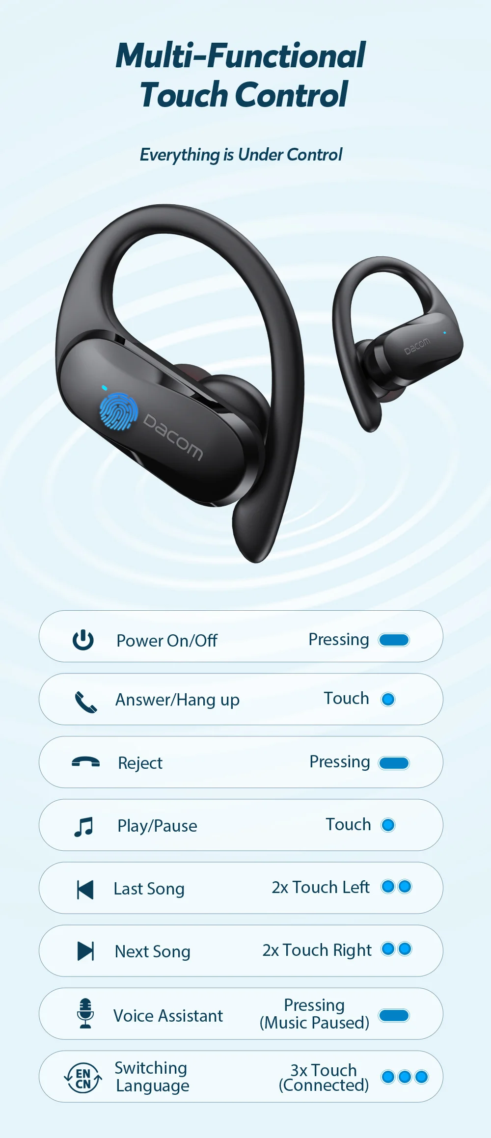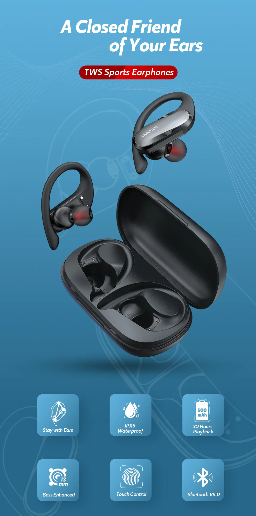 DACOM ATHLETE TWS Bluetooth наушники бас настоящие беспроводные стерео наушники спортивные Bluetooth наушники ушной крючок для iPhone Samsung