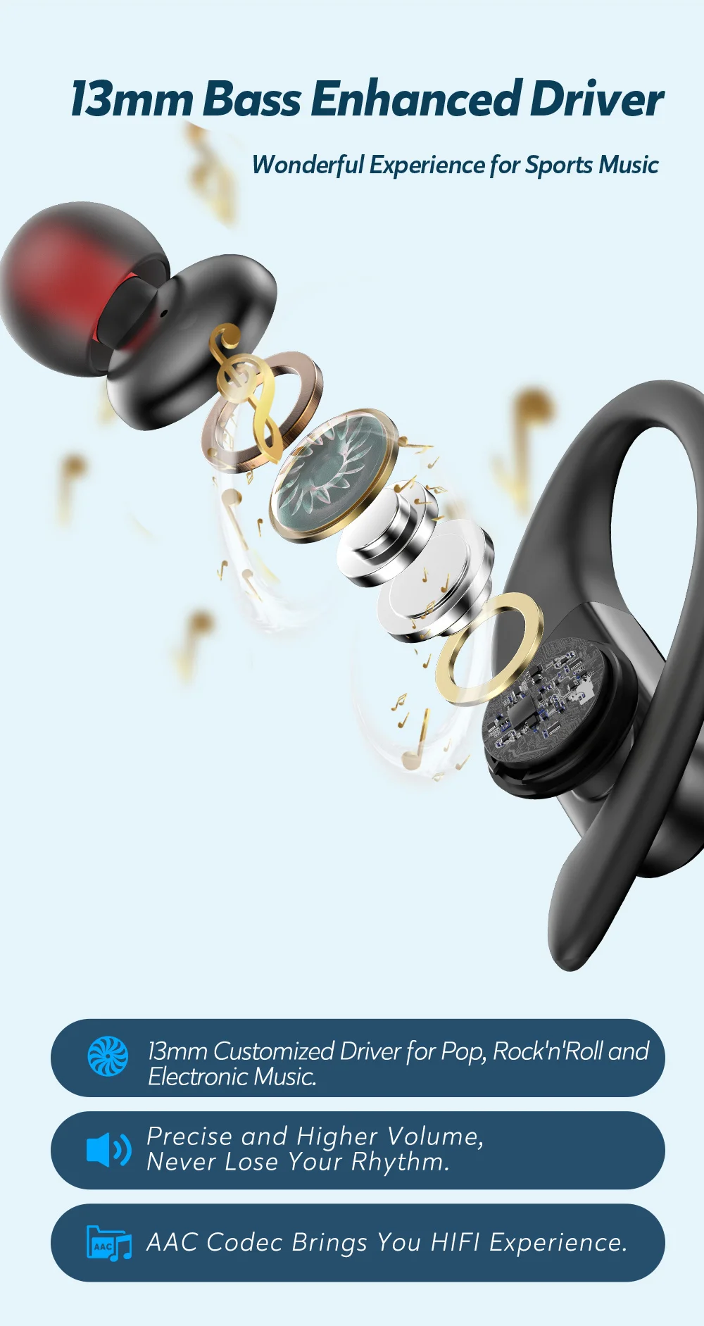Bluetooth-наушники TWS водонепроницаемые с заушным крючком