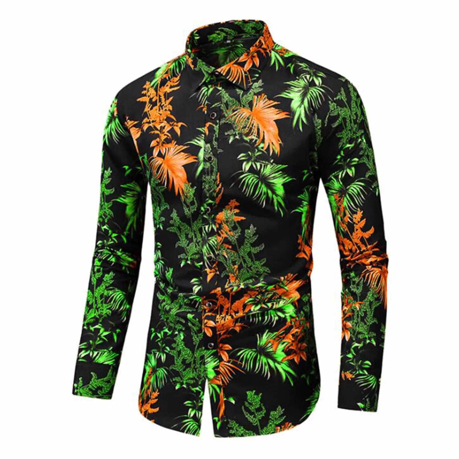 Рубашка мужская приталенная с длинным рукавом, Повседневная Блузка с цифровым принтом, с гавайским принтом, в уличном стиле, осень