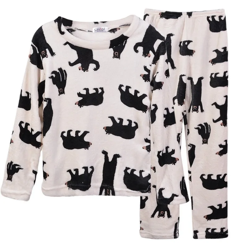 Новые женские стильные комплекты, осенне-зимняя Пижама, фланелевая Толстая теплая Женская одежда для сна с мультяшным рисунком, Женская домашняя одежда с милыми животными
