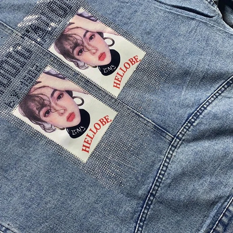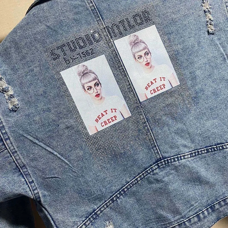 Женская джинсовая куртка, с буквенным принтом, с длинным рукавом