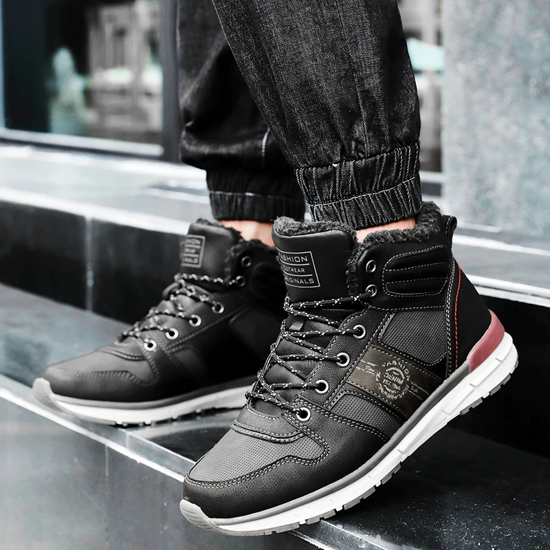 Мужские зимние кроссовки с плюшем, теплая Повседневная обувь, водон...