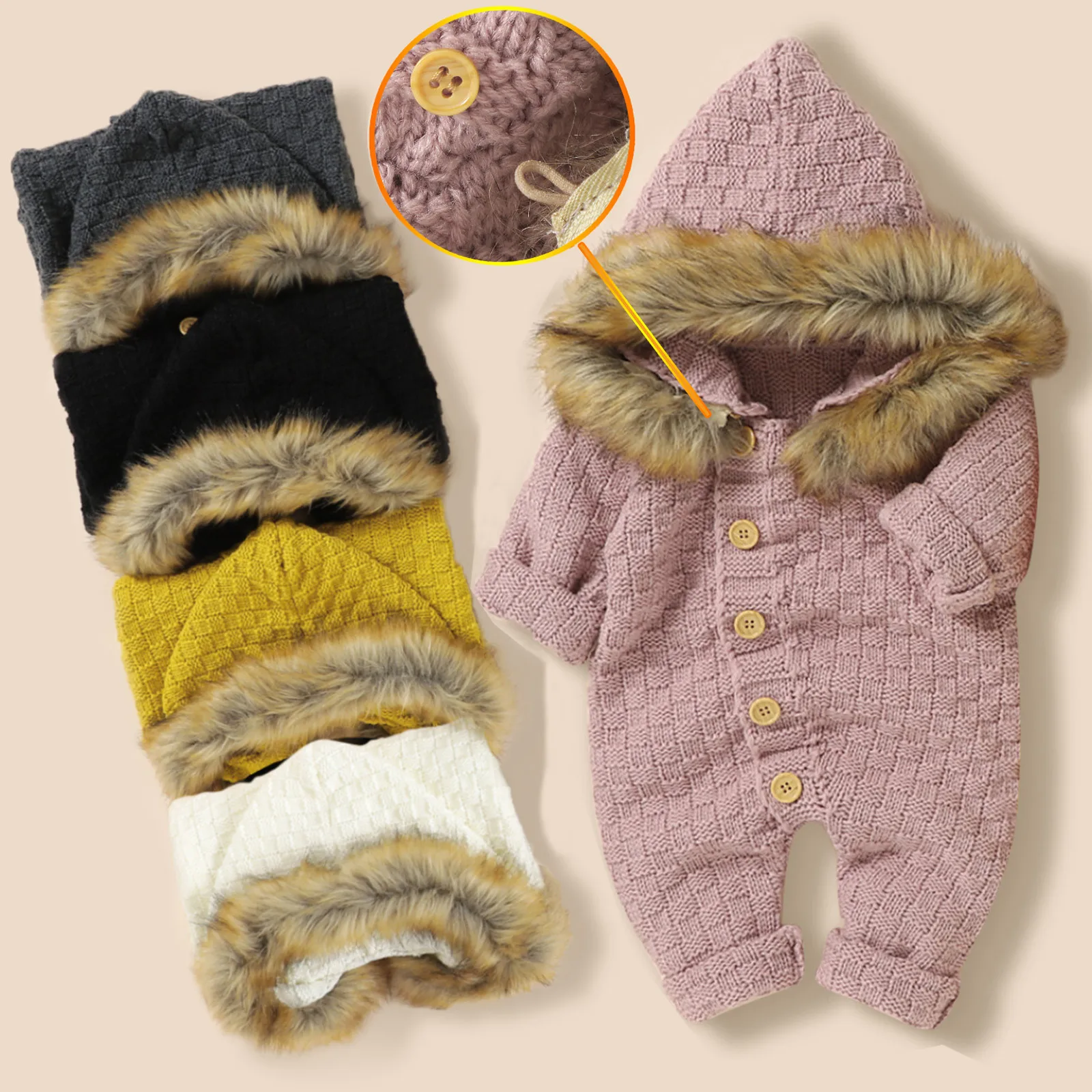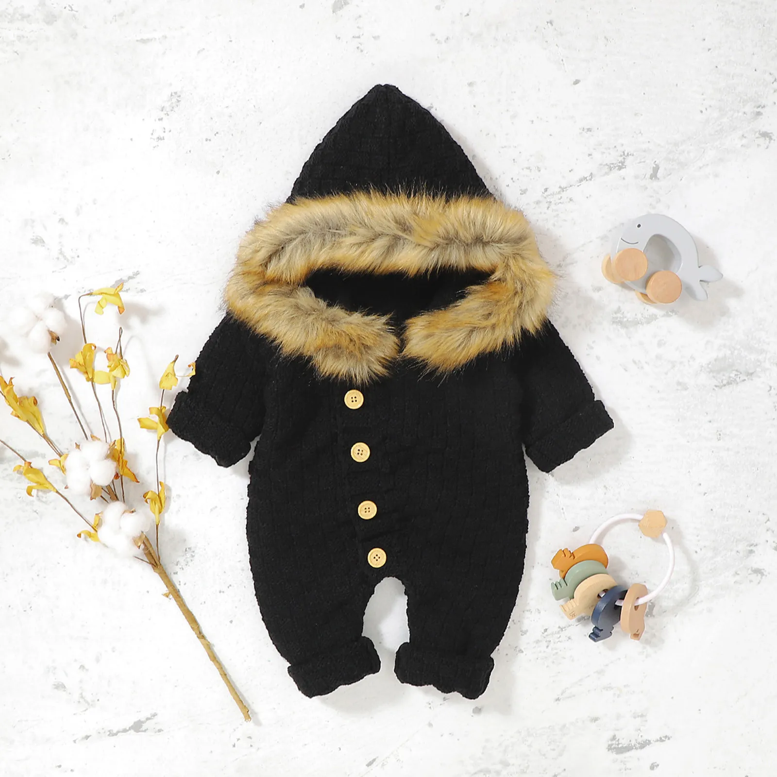 Зимний Теплый Вязаный комбинезон с капюшоном для маленьких мальчиков и девочек; Комбинезон