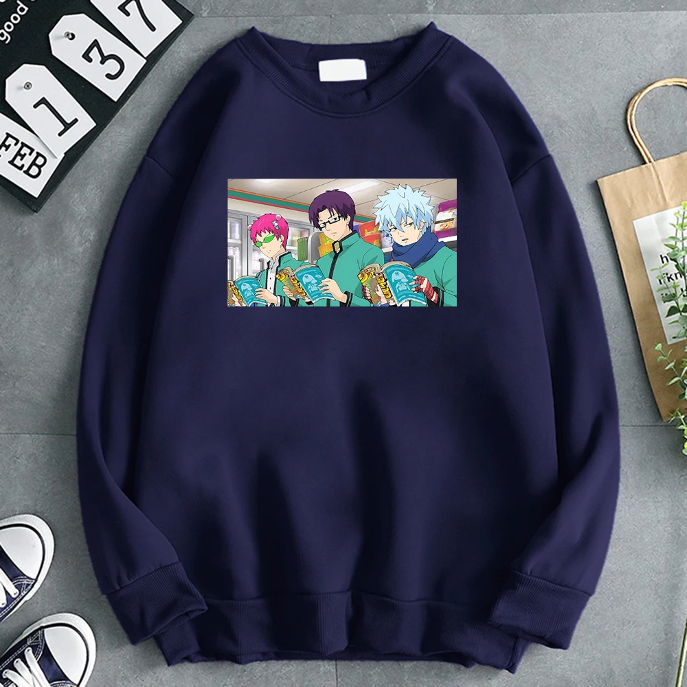 Толстовка мужская флисовая с капюшоном и длинным рукавом в стиле японского аниме Саики к-Манга