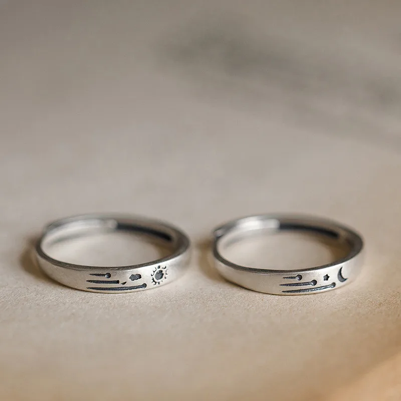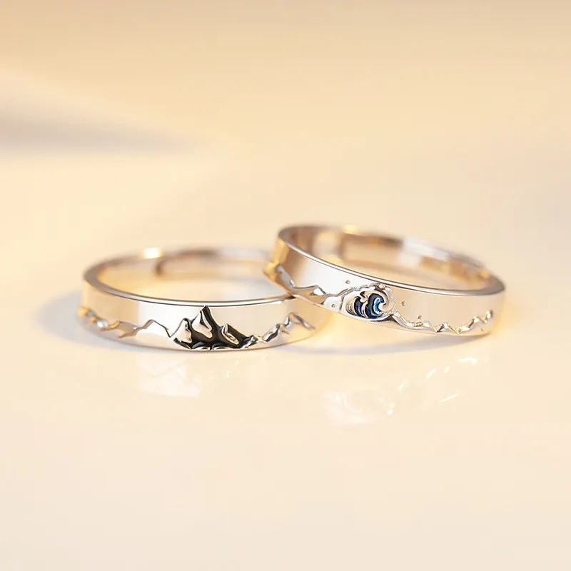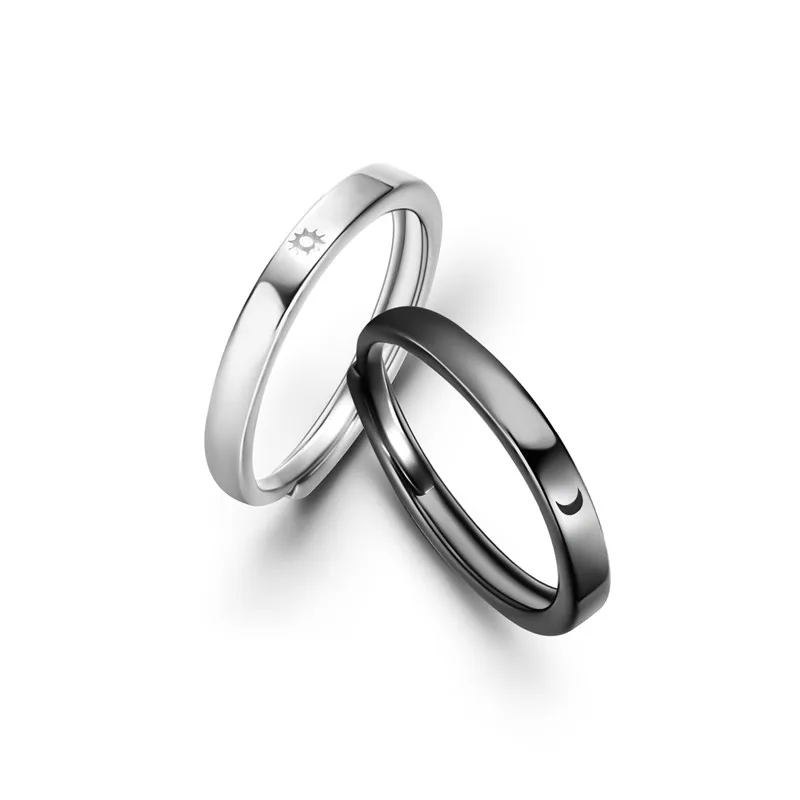 Электрокардиограмма влюбленного сердца, 2 шт., открытая пара, цвет черный, серебристый, для помолвки, свадьбы, подарок на день Святого Валентина, кольца для мужчин и женщин