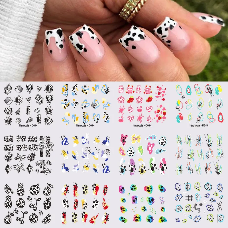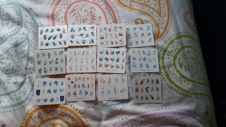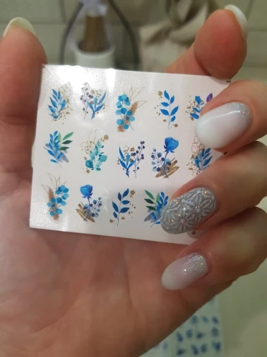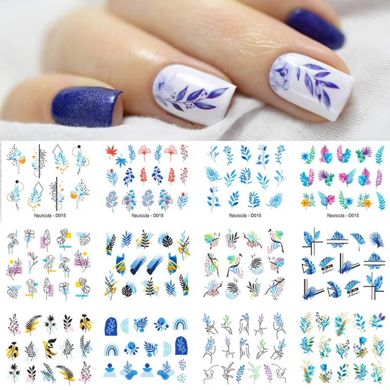 Набор водных наклеек для ногтей с голубыми листьями, 12 шт.