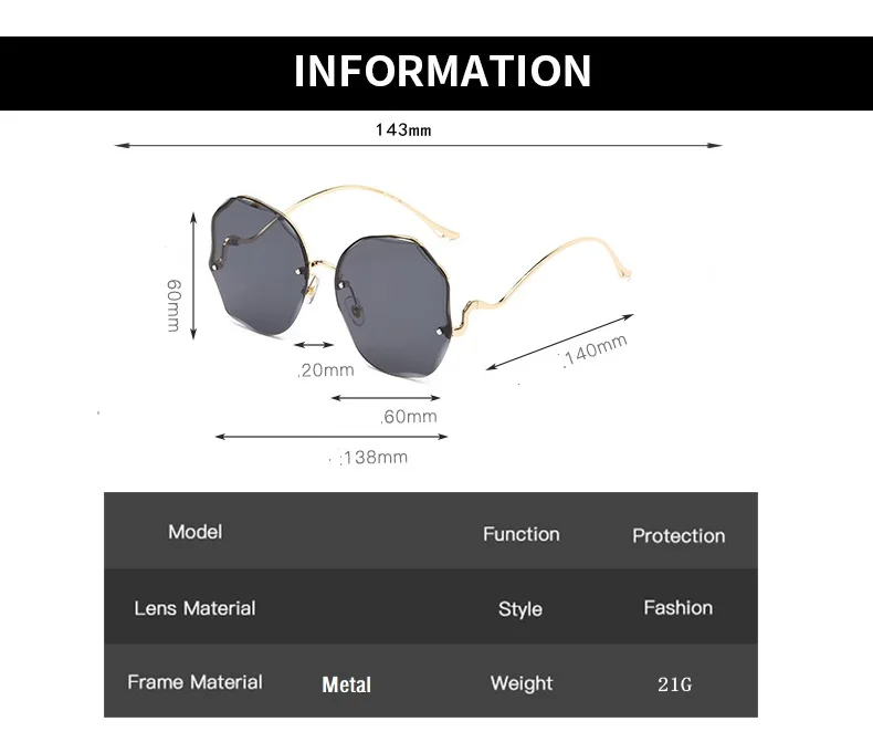 Очки солнцезащитные женские без оправы с градиентными линзами, Uv400