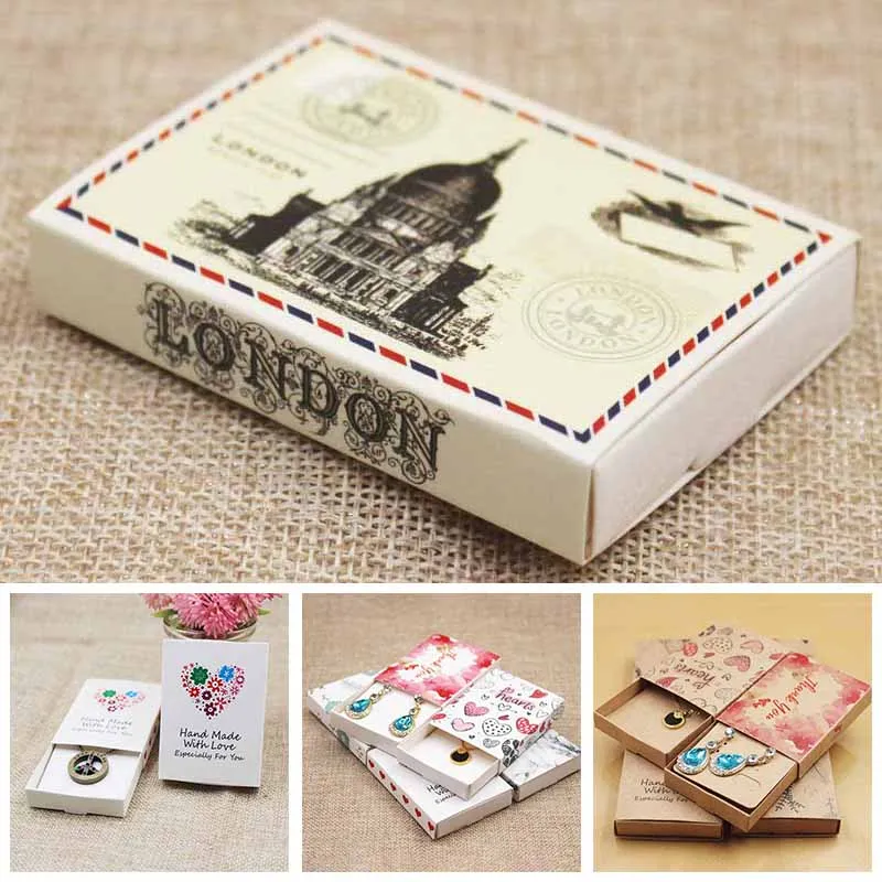 Коробка из крафт-бумаги в стиле ретро, для упаковки ювелирных изделий